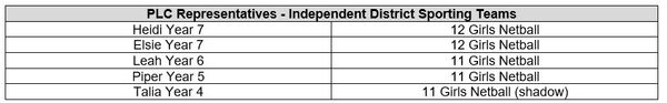 - Elsie and Heidi in Year 7 made the 10-12 District Netball team.